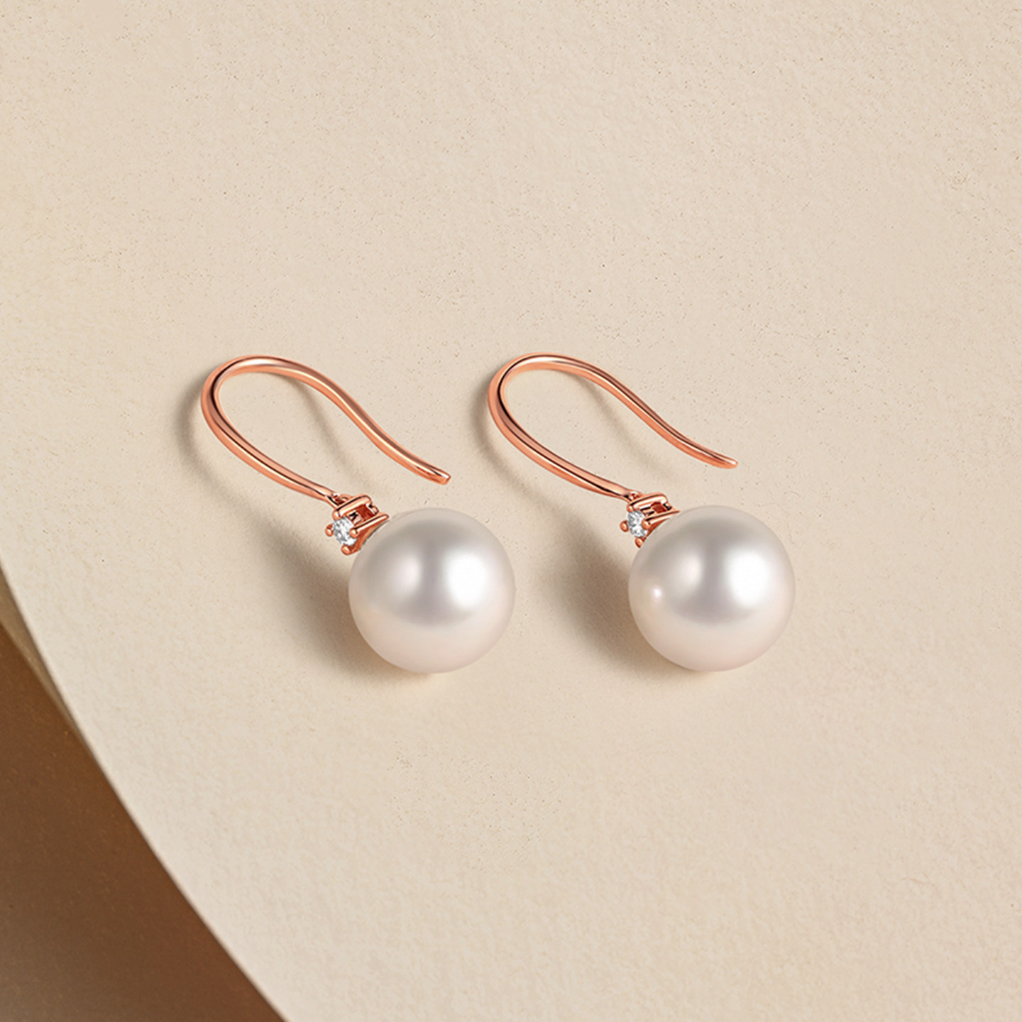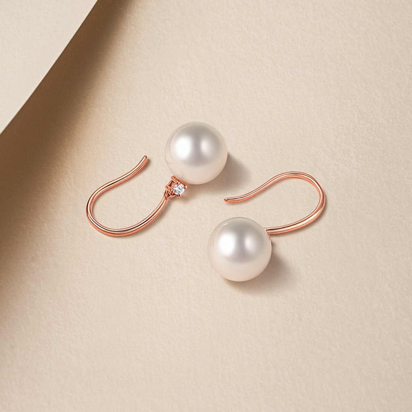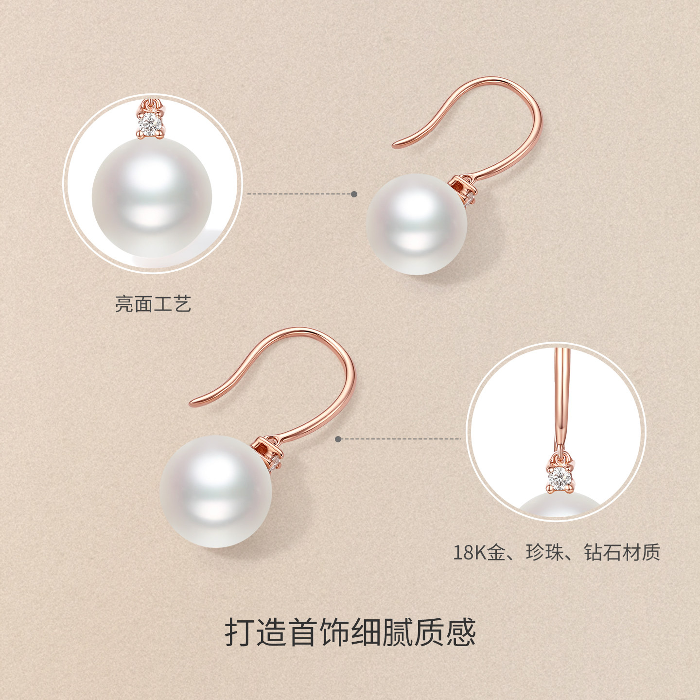 京润珍珠云逸淡水有核珍珠耳钉10 11mm圆形大颗珍珠耳饰生日礼物P