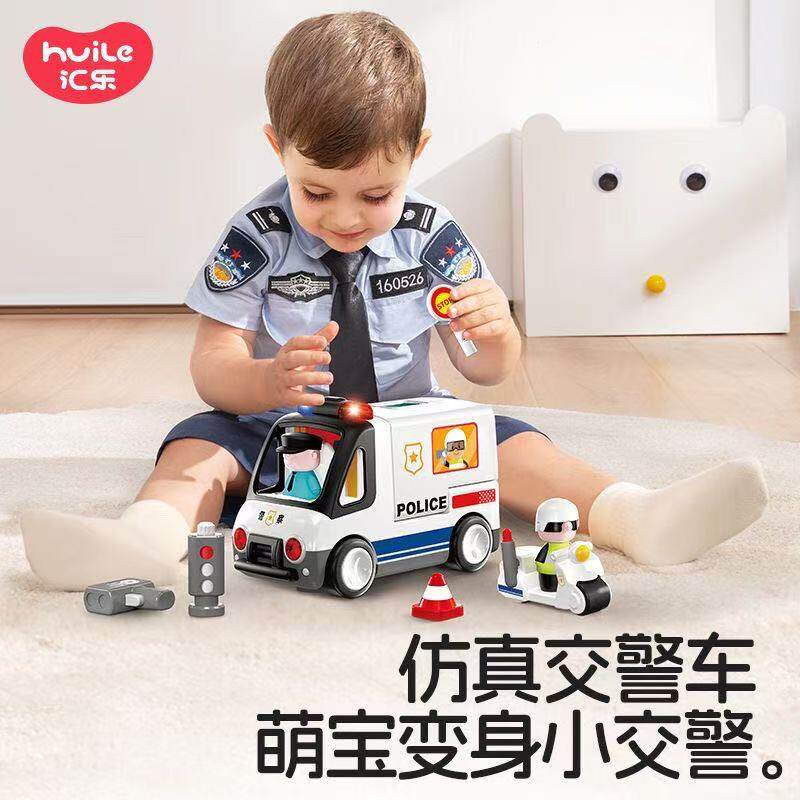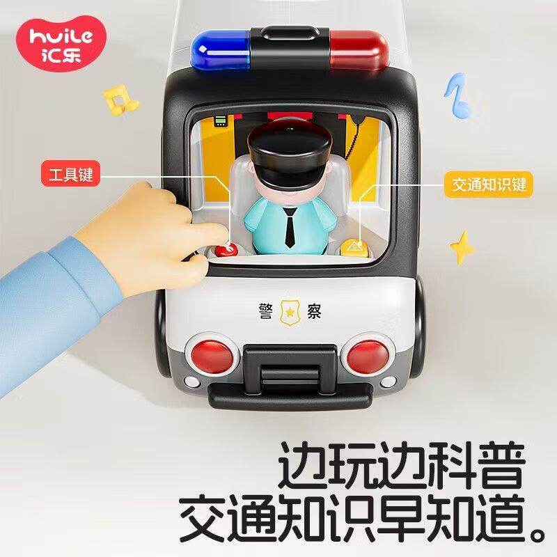 汇乐早教电动儿童交警车仿真模型声光益智男女孩双语中英文玩具车