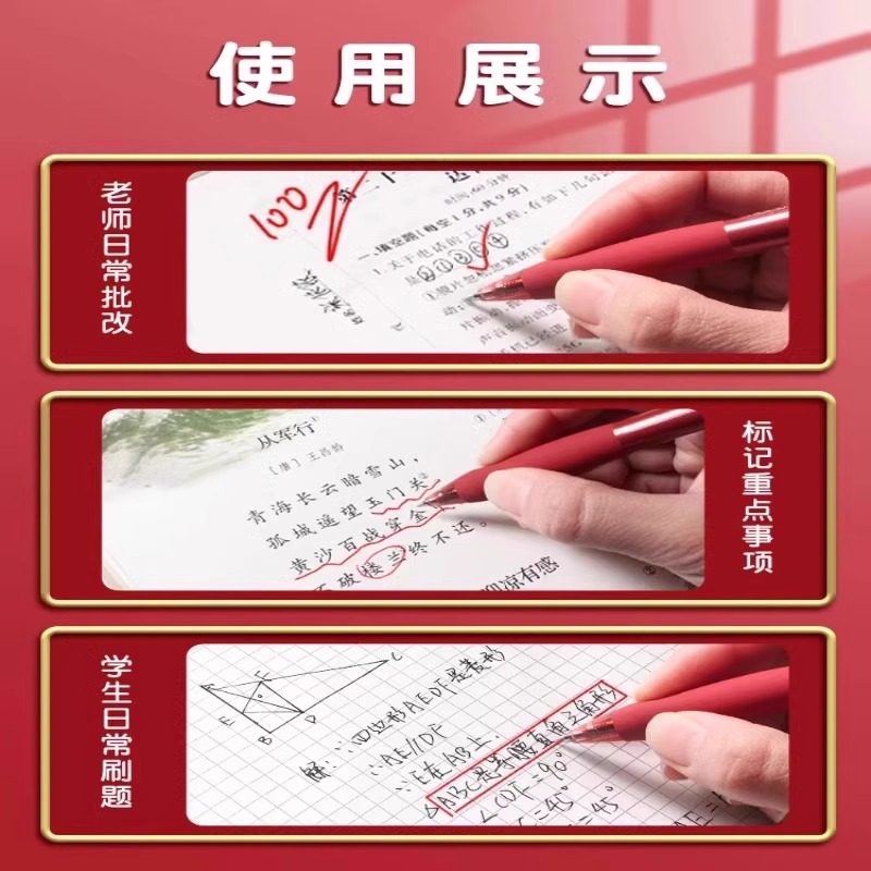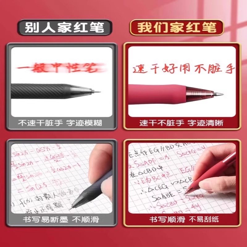 得力红笔学生专用红色中性笔教师老师专用批改作业教师节礼物按动式 标记红色水笔高颜值速干子弹头0.5mm
