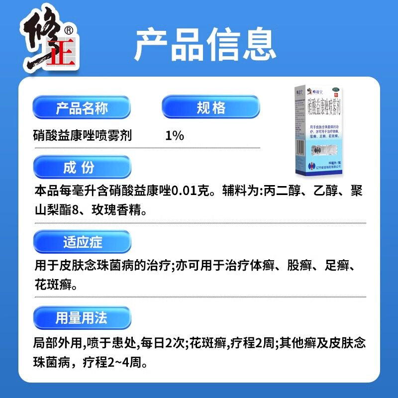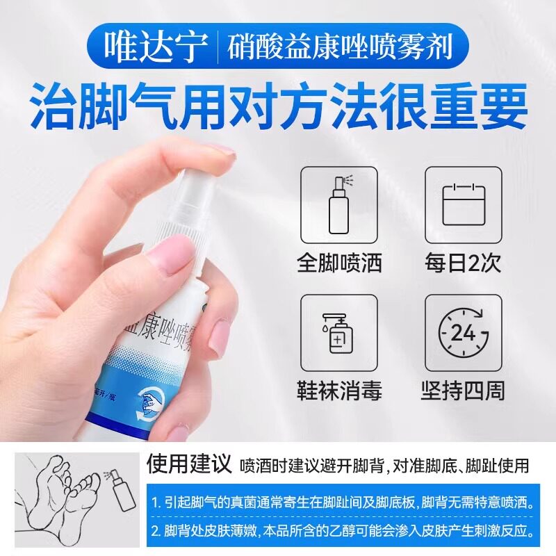 修正唯达宁硝酸益康唑喷雾剂80ml治疗癣症脚气止痒脱皮杀菌药脚臭