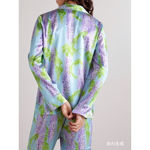 BERNADETTE春夏女士花卉印花弹力真丝衬衫 睡衣 式
