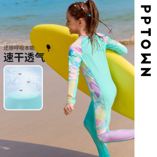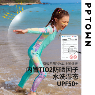 连体泳装 长裤 大童冲浪度假游泳衣 儿童防晒抗氯长袖 女童泳衣新款