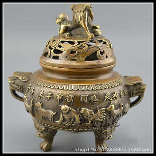 香炉仿古收藏铜器摆件古玩熏 炉十二生肖工艺礼品纯铜摆件