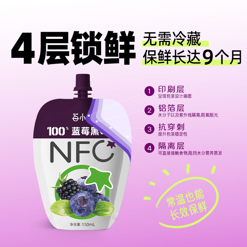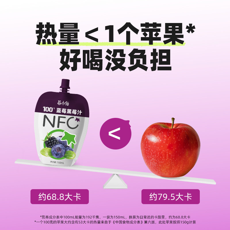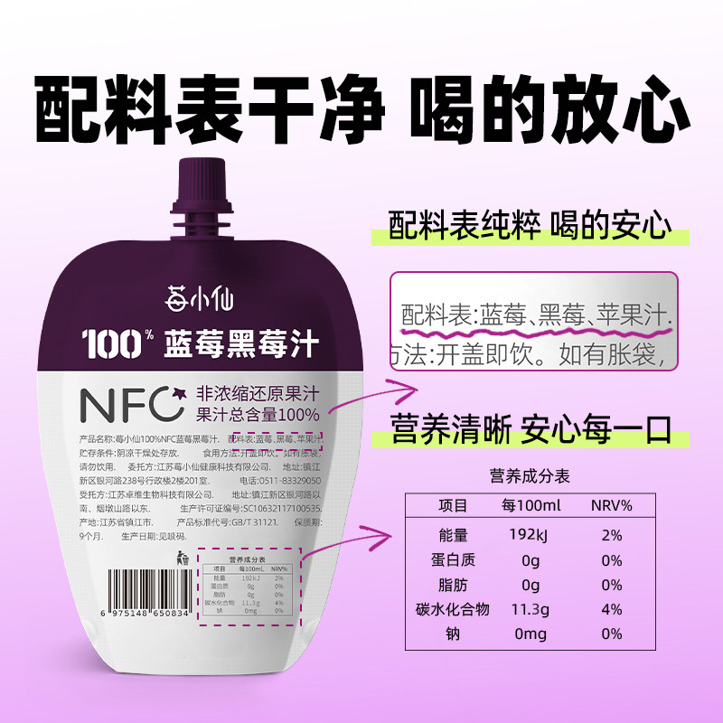 10袋不加防腐剂果汁 莓小仙100%NFC蓝莓黑莓汁150ml 果汁礼盒