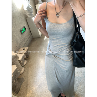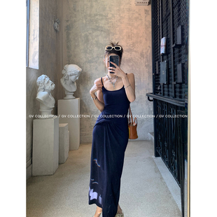 性感包臀裙开叉长裙皮裙裙子 新款 灰尘邓邓 挂脖连衣裙女2025秋季