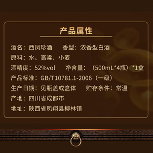 2020年产 西凤珍酒52度浓香型酒白酒整箱纯粮食婚宴喜酒官方正品