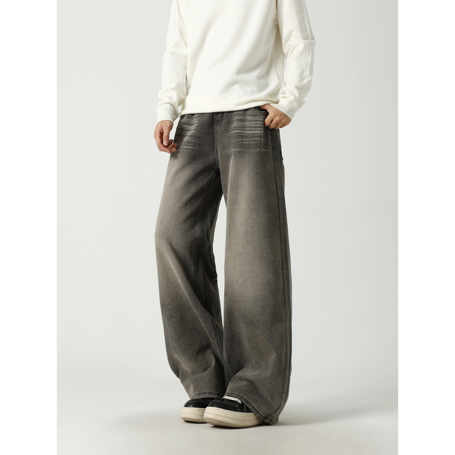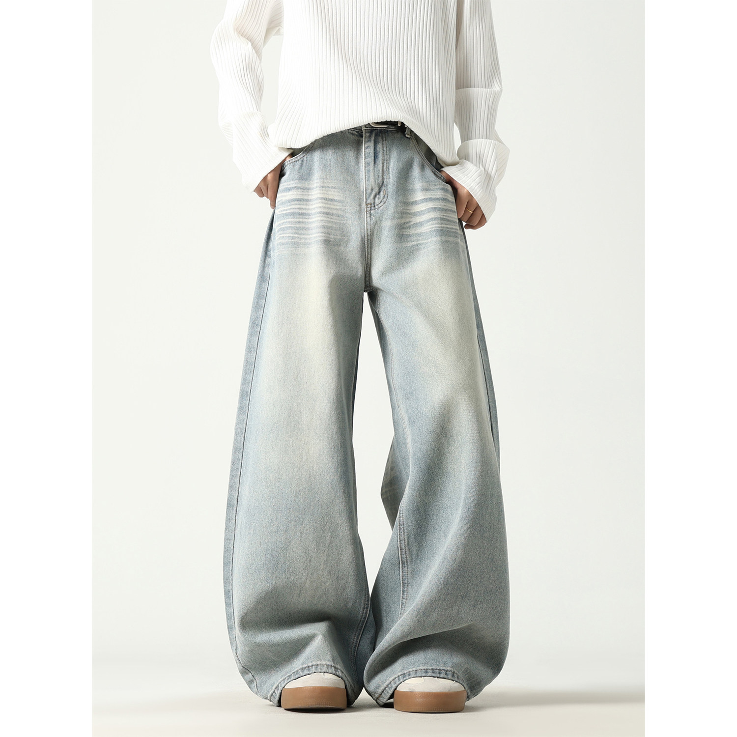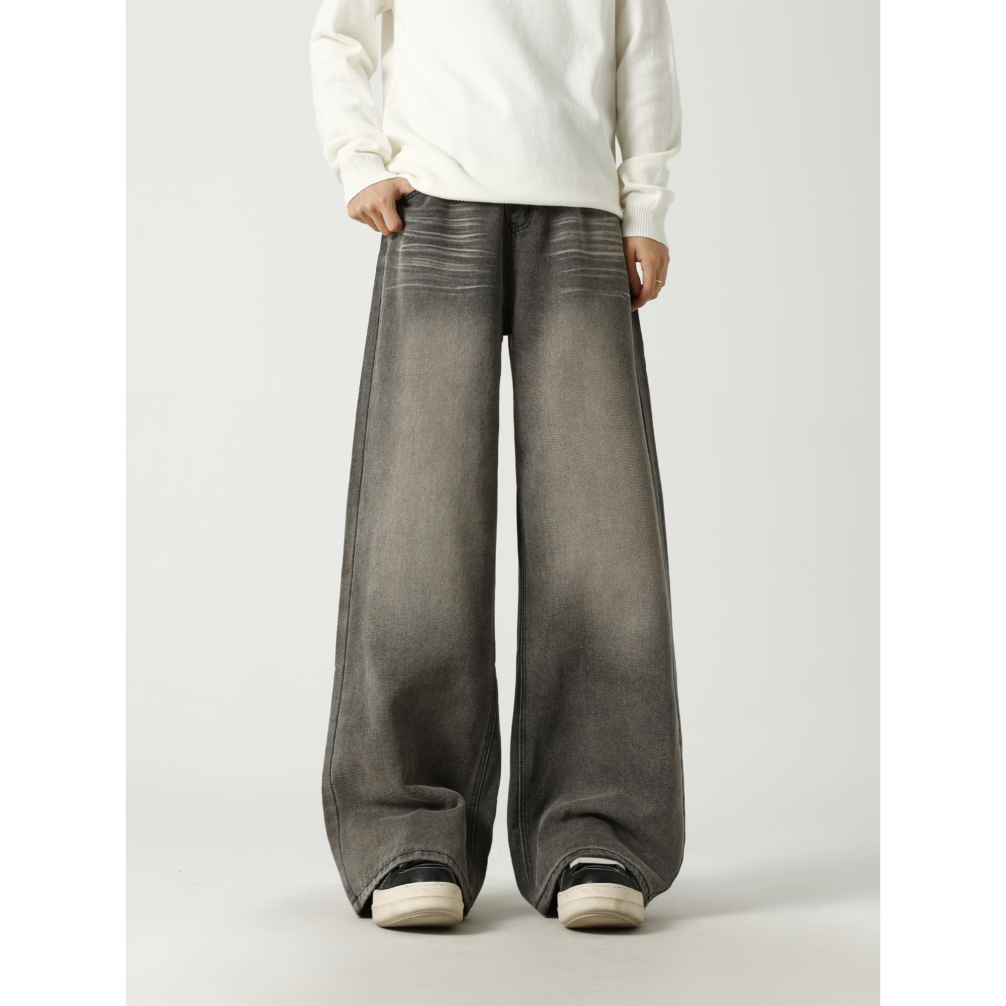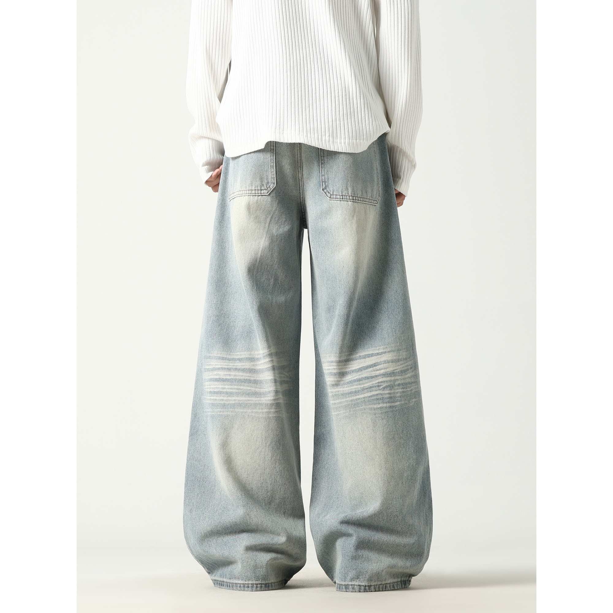 VESTITI夏季 高街复古水洗牛仔裤 男款 子美式 宽松阔腿拖地裤 ACE