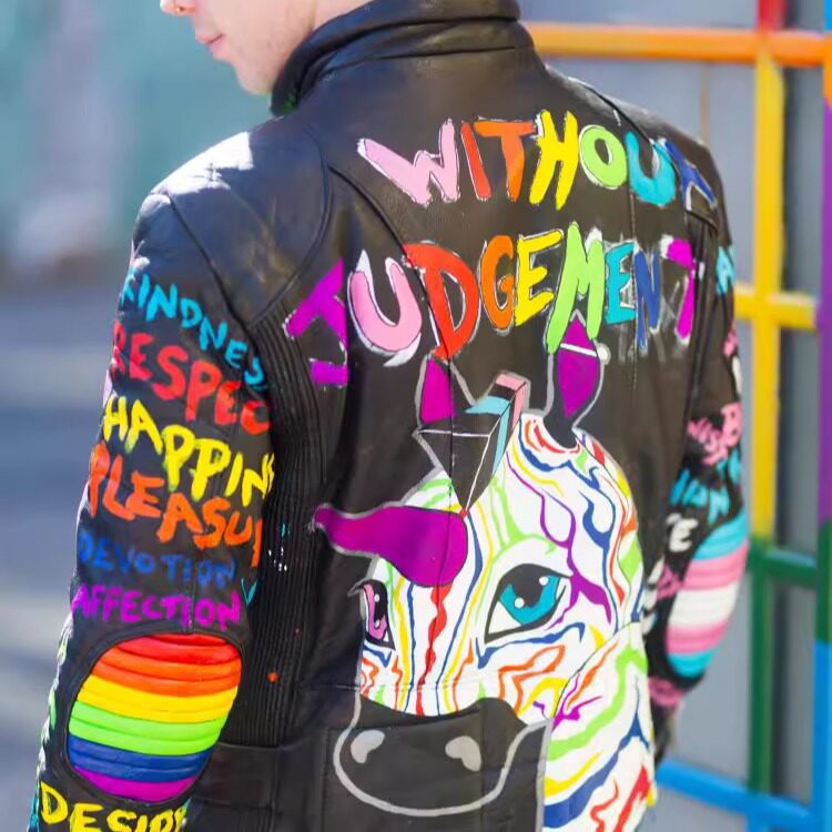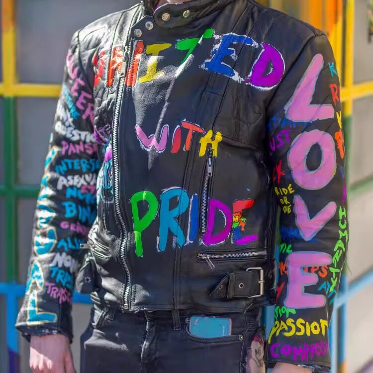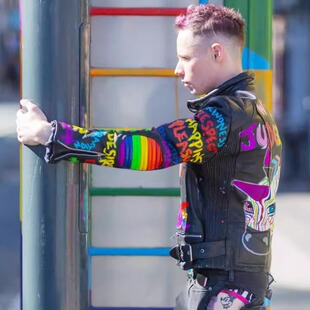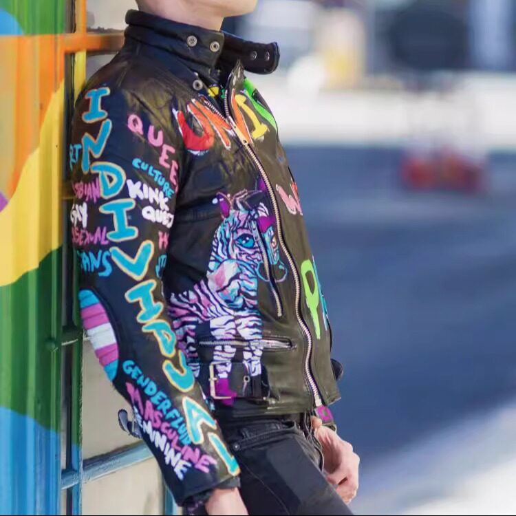 英国代购 手作哥特朋克彩色手绘图案机车骑行夹克皮衣 Jacket㊣