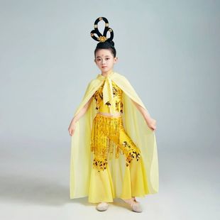 小船谣冠玉舞蹈服城外小月亮演出服儿童旗袍古典舞纱衣中国风