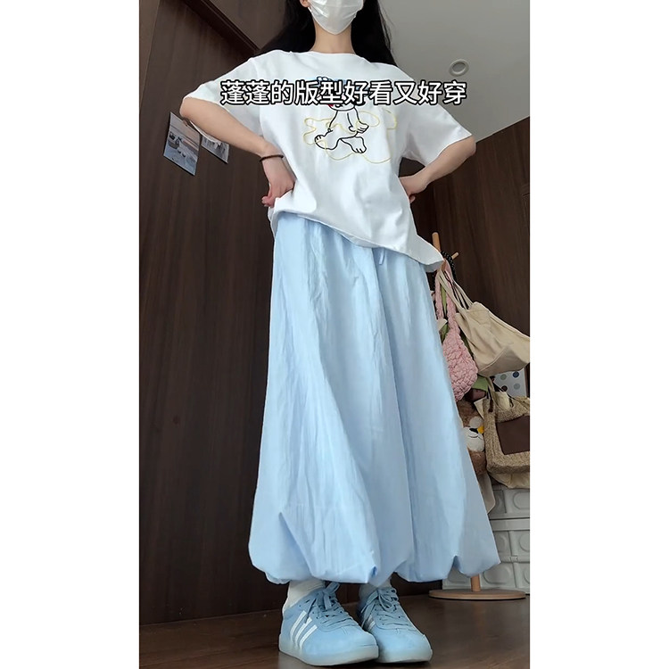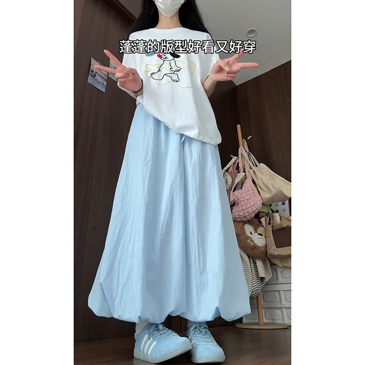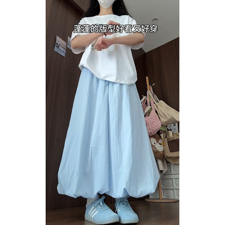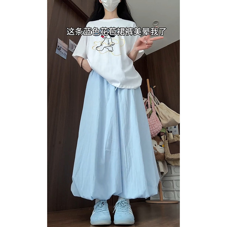 防晒休闲宽松半身裙裤 2025新款 女夏季 韩系温柔风蓝色奶芙花苞裙裤