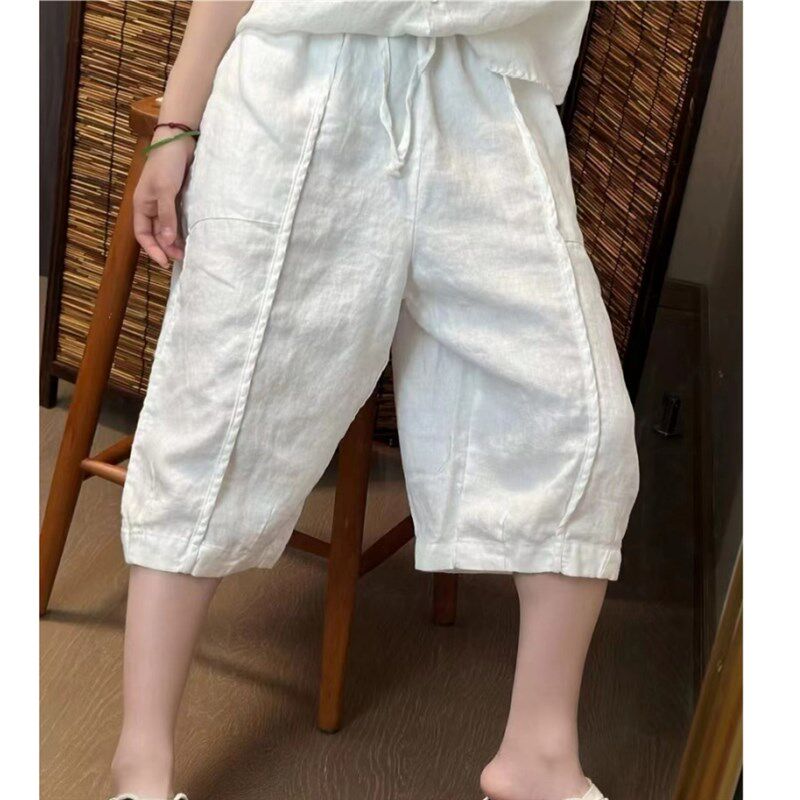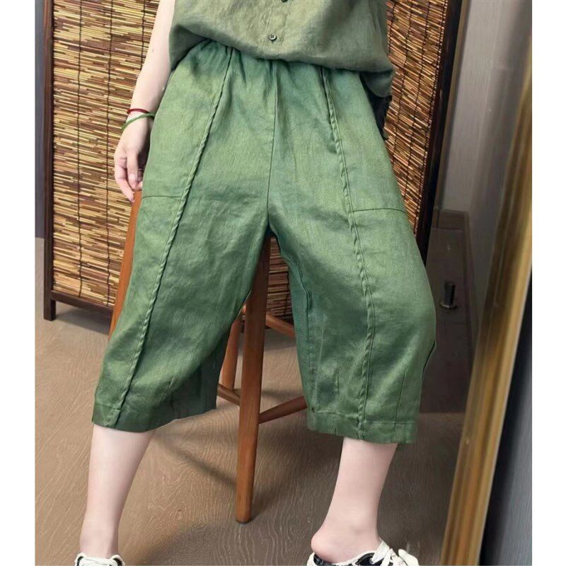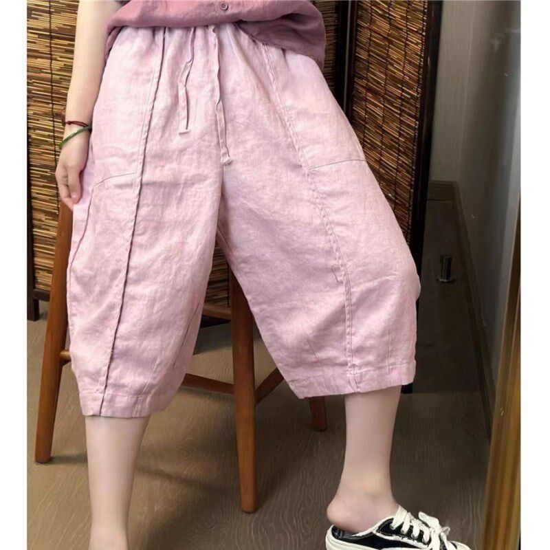 休闲裤 版 复古文艺松弛感七分裤 定制苎麻料夏季 女宽松显瘦 型赞爆