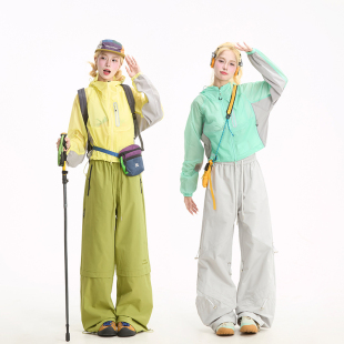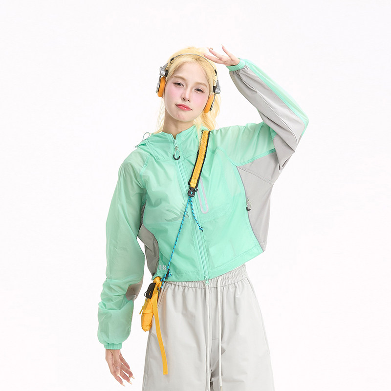 NERESUM美式 户外连帽防晒衣女复古撞色轻薄透气百搭防晒外套 夏季