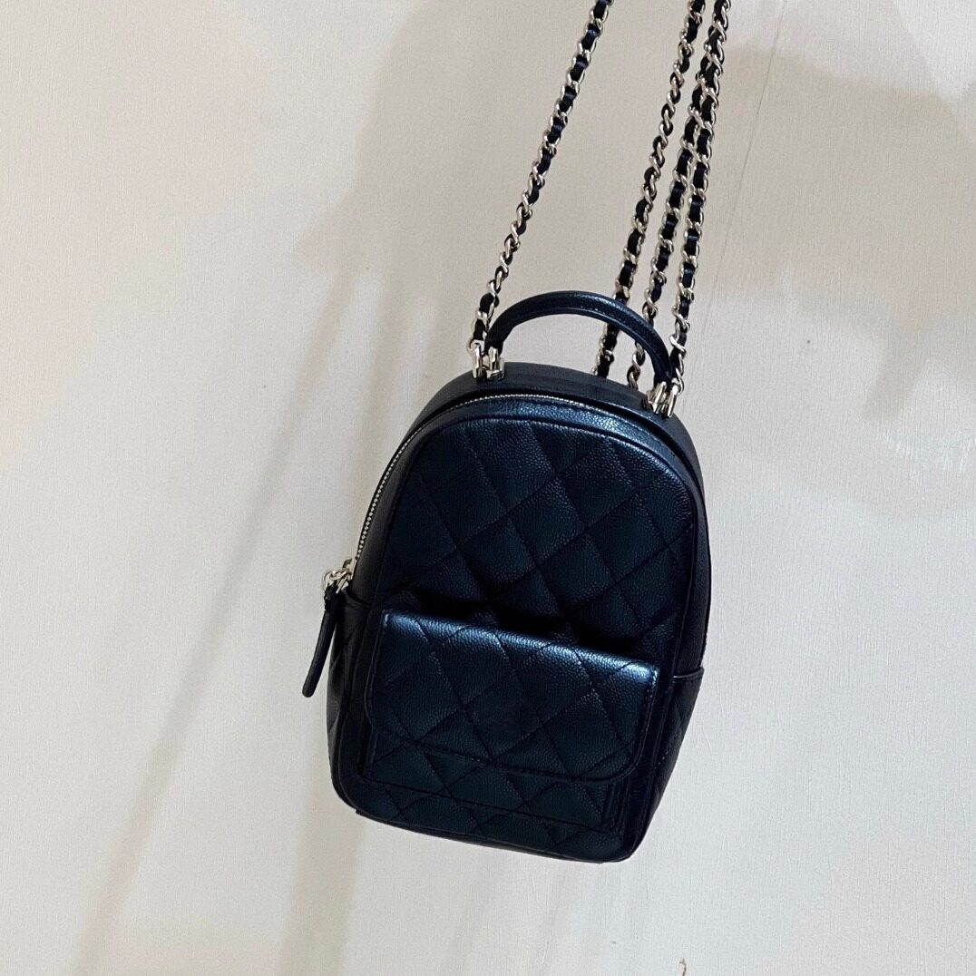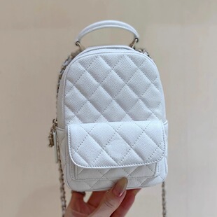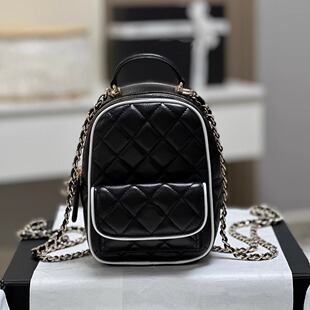 24C荔枝纹牛皮mini双肩包黑金菱格链条包黑白边熊猫拼色小背包女