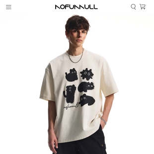 NOFUNNULL260g重磅索罗娜凉感短袖 休闲宽松小领口上衣女 t恤男美式