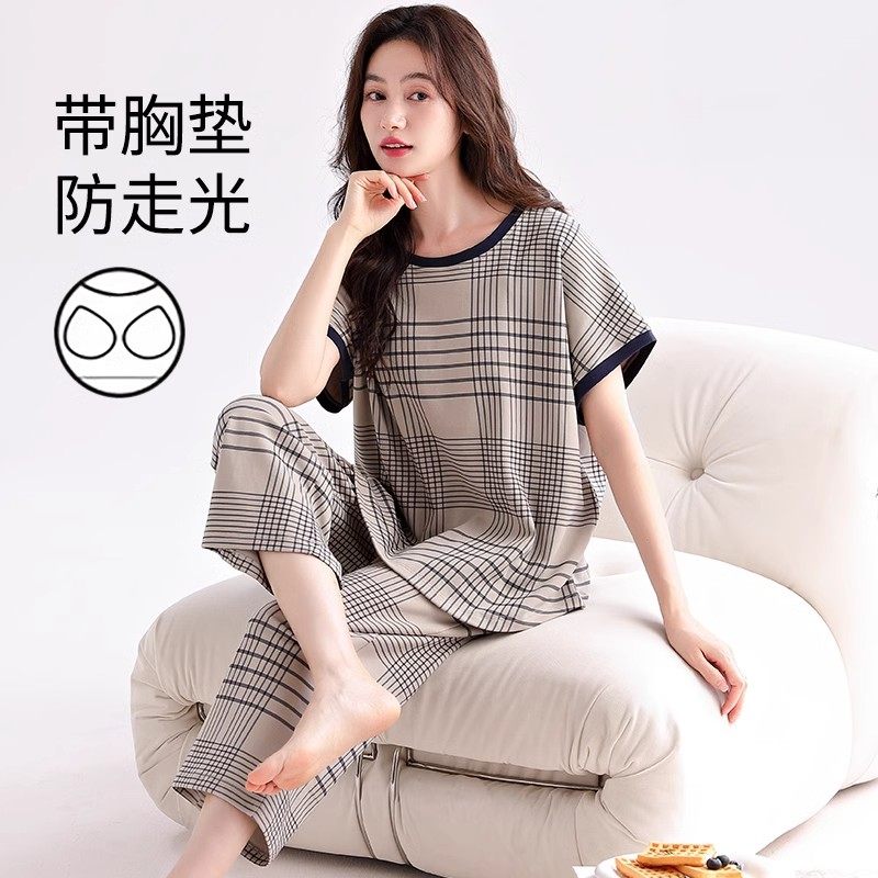 可外穿新款 套装 秋冬 缎面睡衣7A抗菌冰丝短袖 ubras流光家居服男士