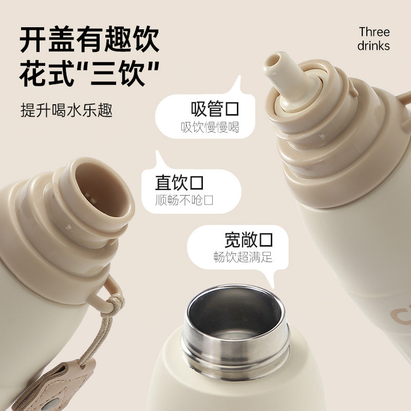希乐保温杯女生高颜值儿童便携学生吸管杯子大容量不锈钢新款 水杯