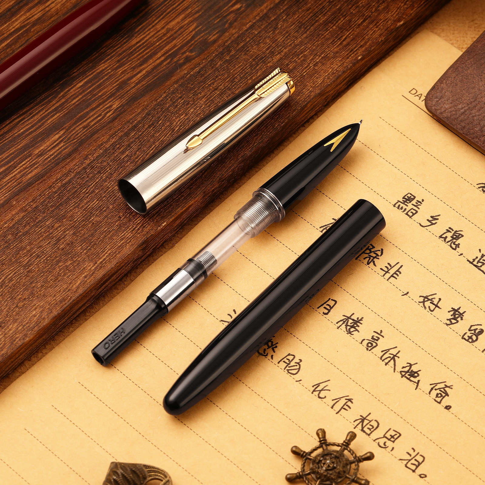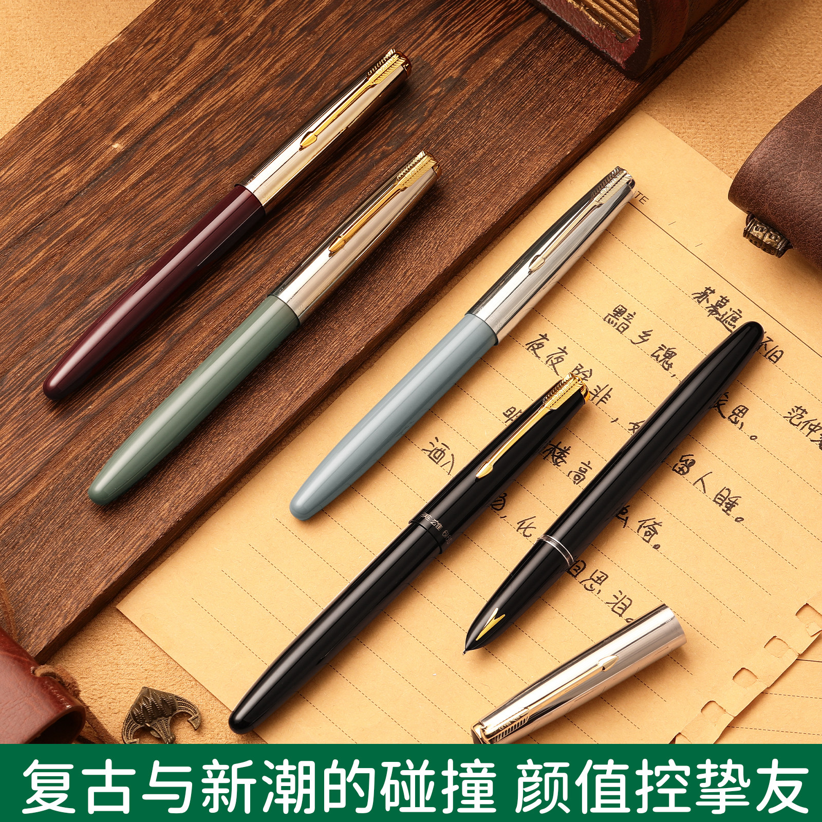 英雄牌钢笔616S美工尖暗尖弯尖墨水笔商务男女士办公送礼可通用3.4口径墨囊练字书法0.8mm复古经典 可定制刻字