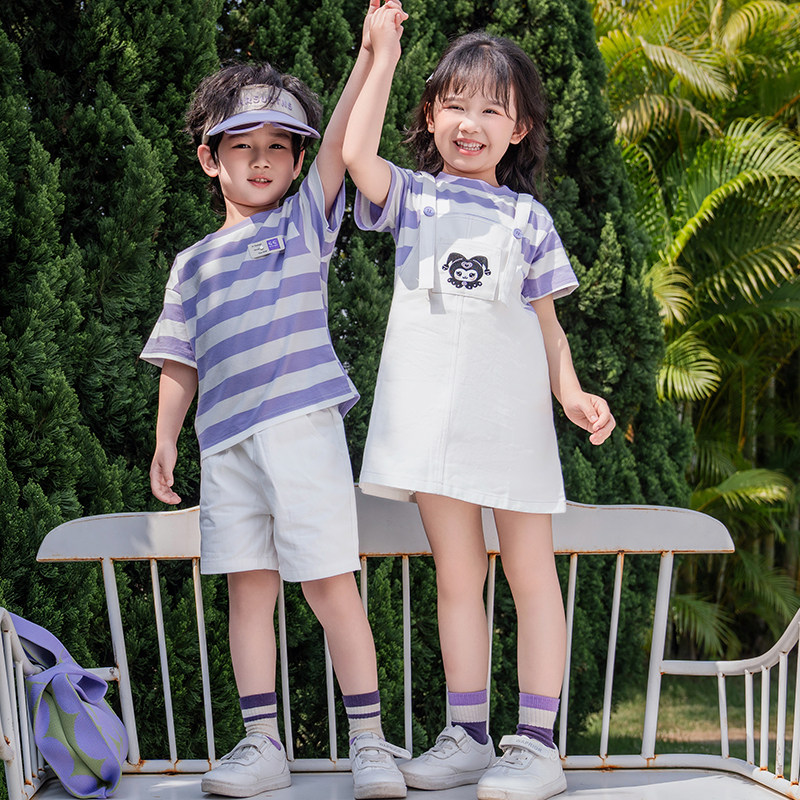 夏装 四口全家福套装 一家三口家庭装 T恤 母女连衣裙潮 条纹衫 亲子装