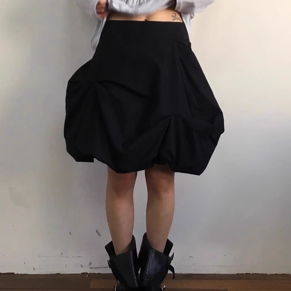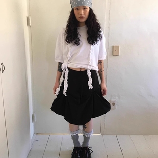 时髦叠穿短款 屁帘女秋冬季 针织半身裙 胖mm立体钩编绑带一片式 大码