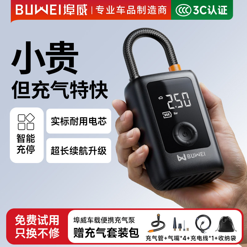 埠威BUWEI车载无线充气泵便携式 汽车用电动打气筒轿车轮胎加气宝