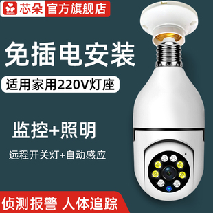 免充值4G双镜头灯头式 家用免插电监控摄像头户外无需网络手机无线