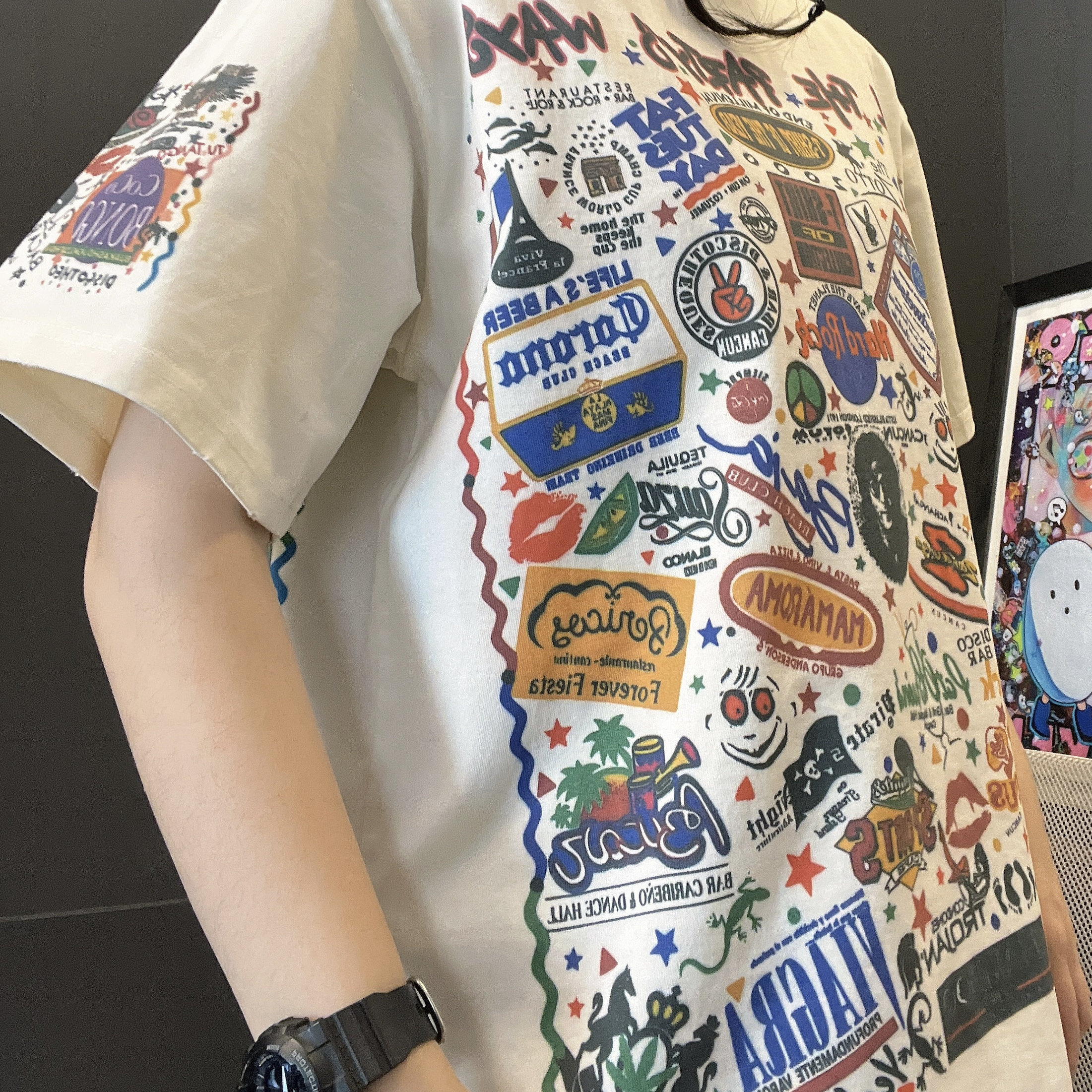 T恤oversize 255克重磅拼接创意涂鸦短袖 王有病工作室 10年老店