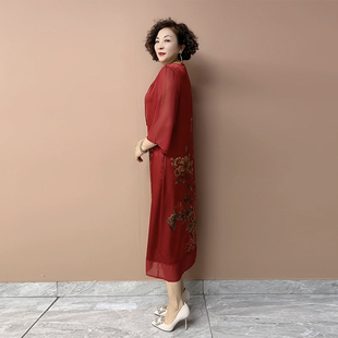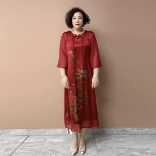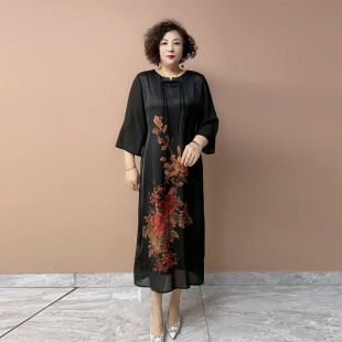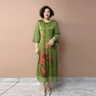 旗袍款 中袖 定位花显瘦长裙 新款 返潮国风中老年妈妈真丝连衣裙夏季