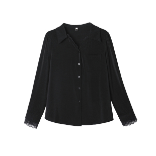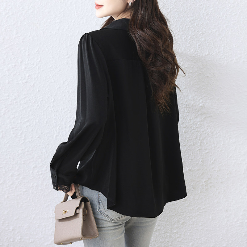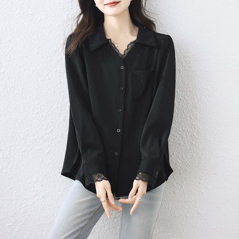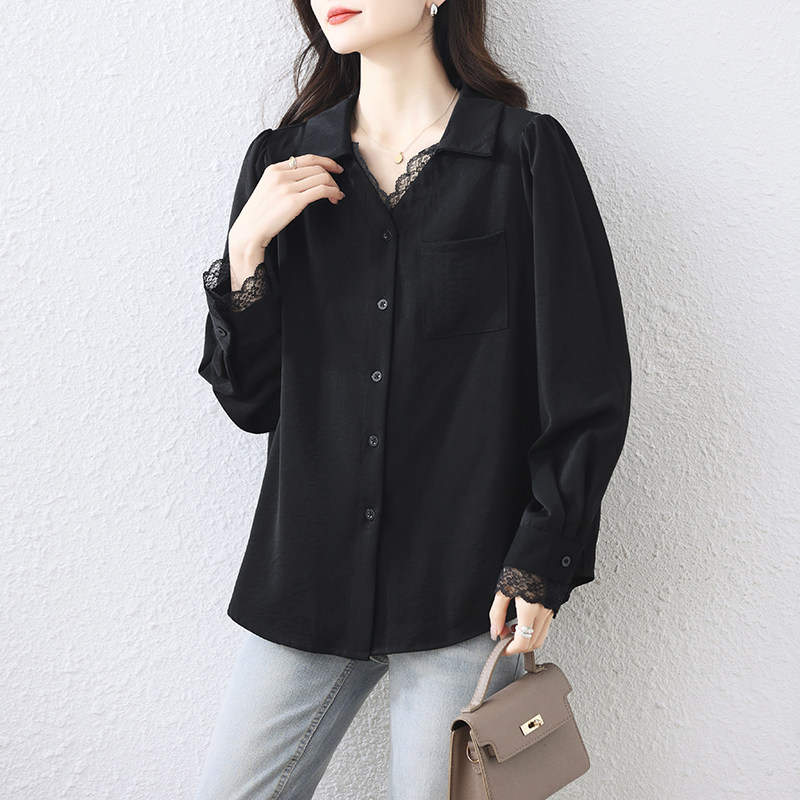大码 女2025春秋宽松百搭长袖 衬衣 OL气质蕾丝拼接衬衫 九月陌墨法式