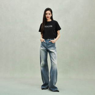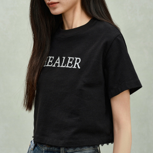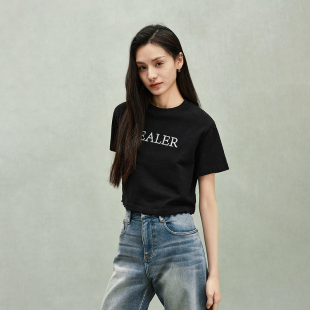 新品 T恤女短上衣宽松休闲2025春季 棉麻刺绣短袖 ochirly欧时力