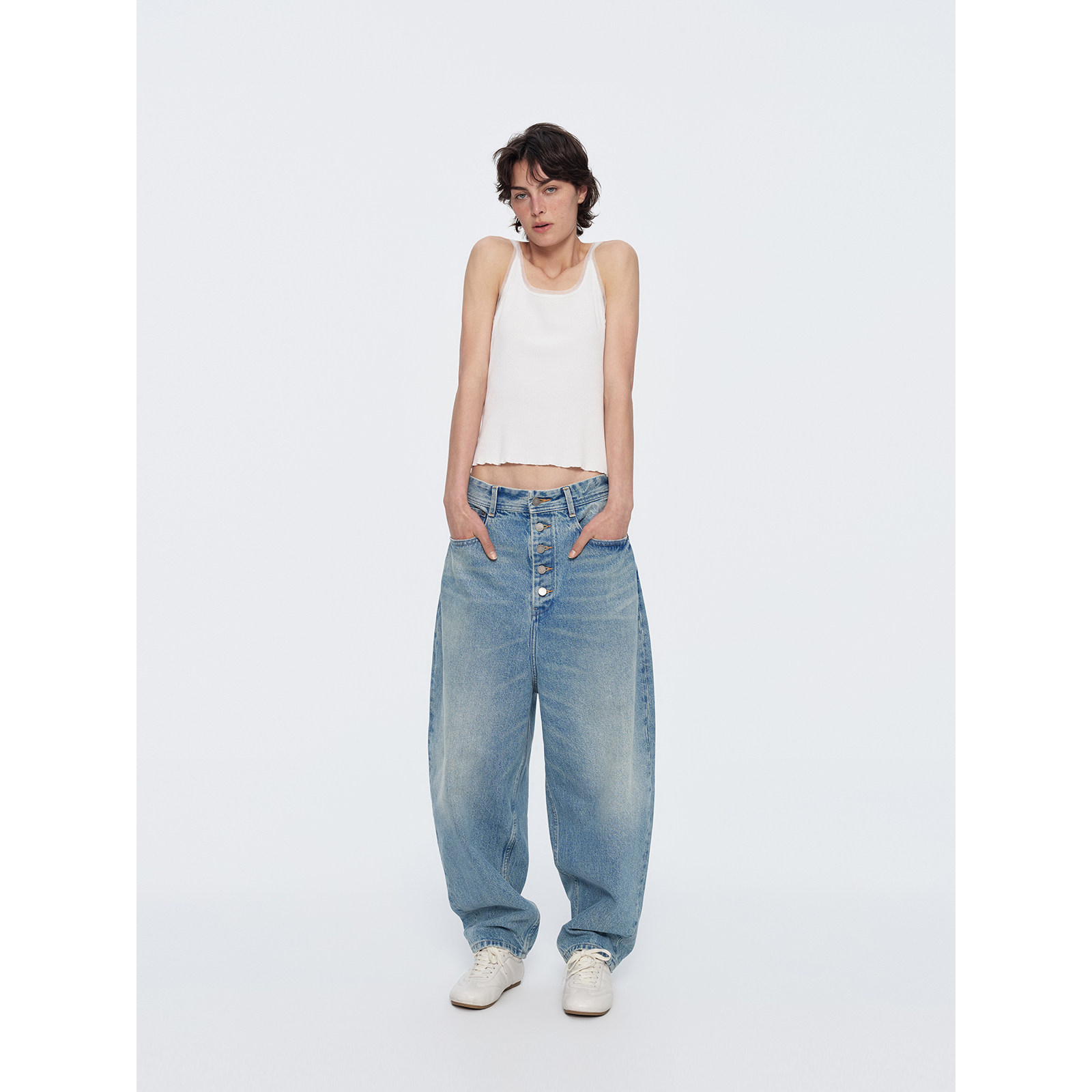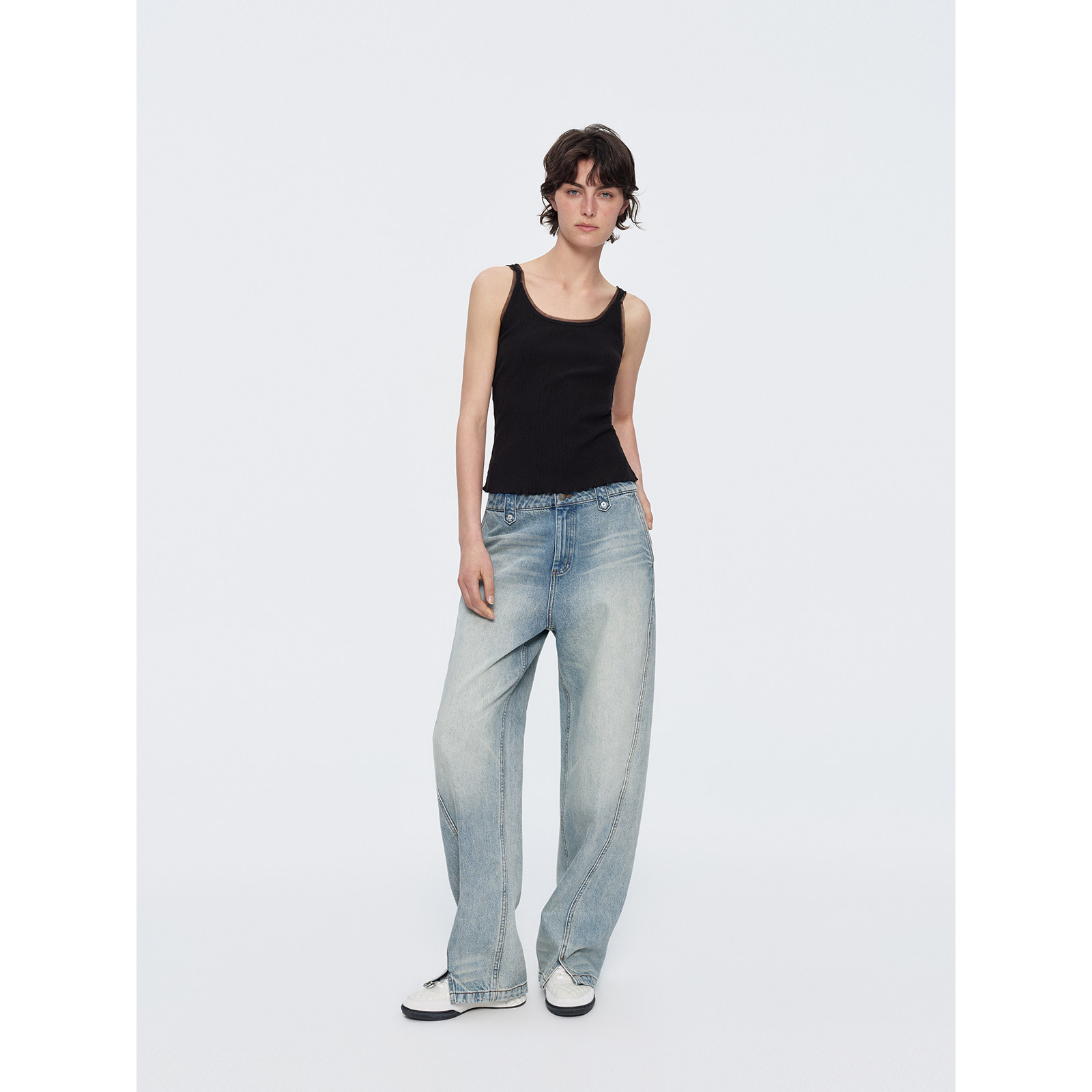 百搭吊带背心女 埃及长绒棉竖条纹肌理感U领修身 华吉言 春蕾