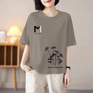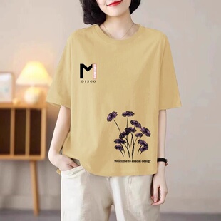胖mm洋气减龄打底衫 t恤女宽松大码 ins 纯棉短袖 清仓捡漏外贸妈妈装