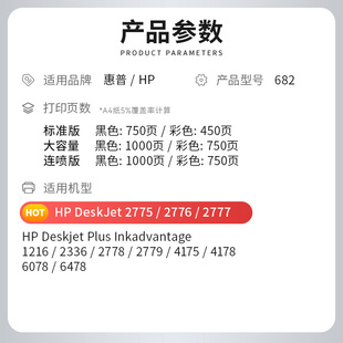 1216 6400黑彩色 2777 4178 6078 2779打印机可加墨4175 2776 2778 1200 兮夜适用惠普682墨盒2336 6478 2775