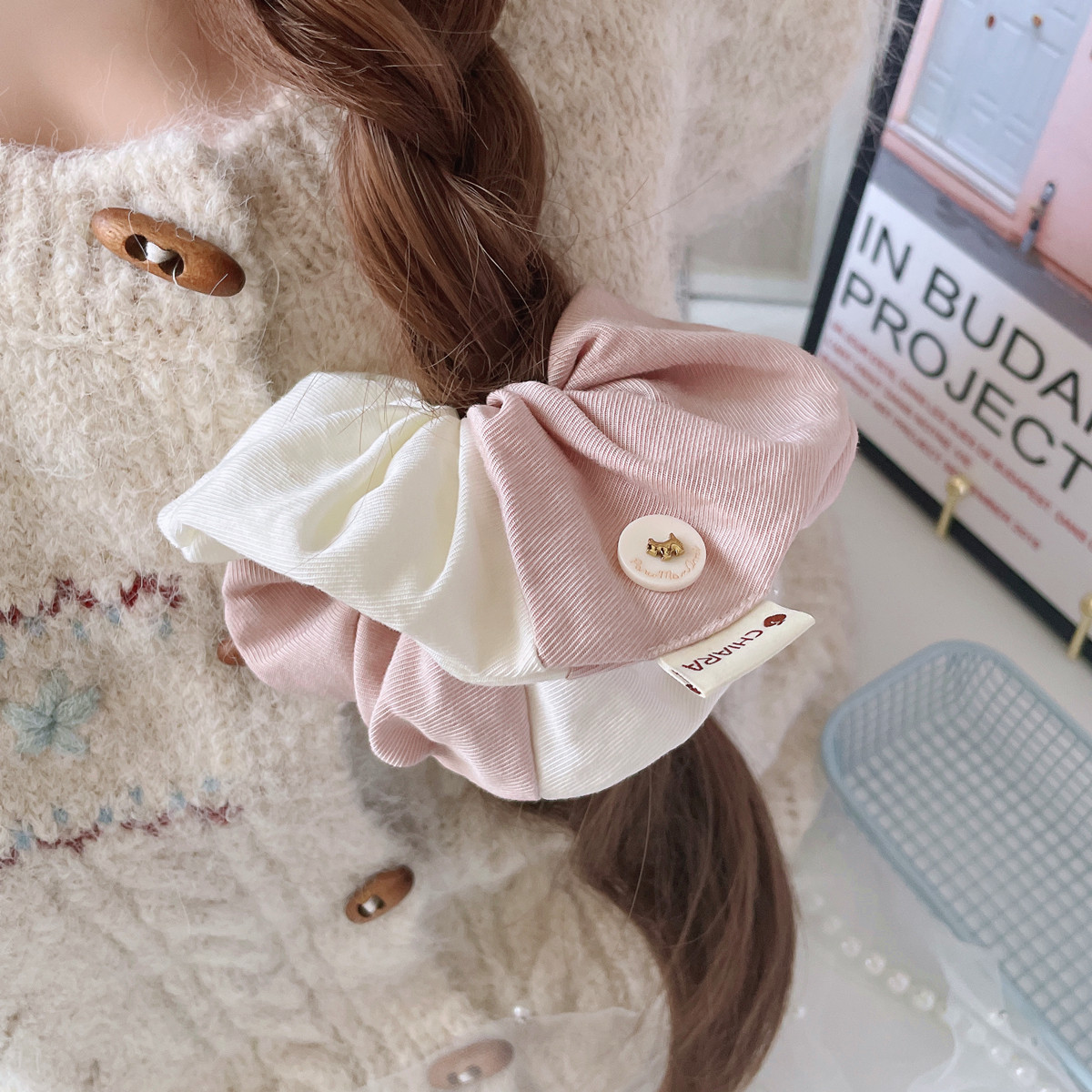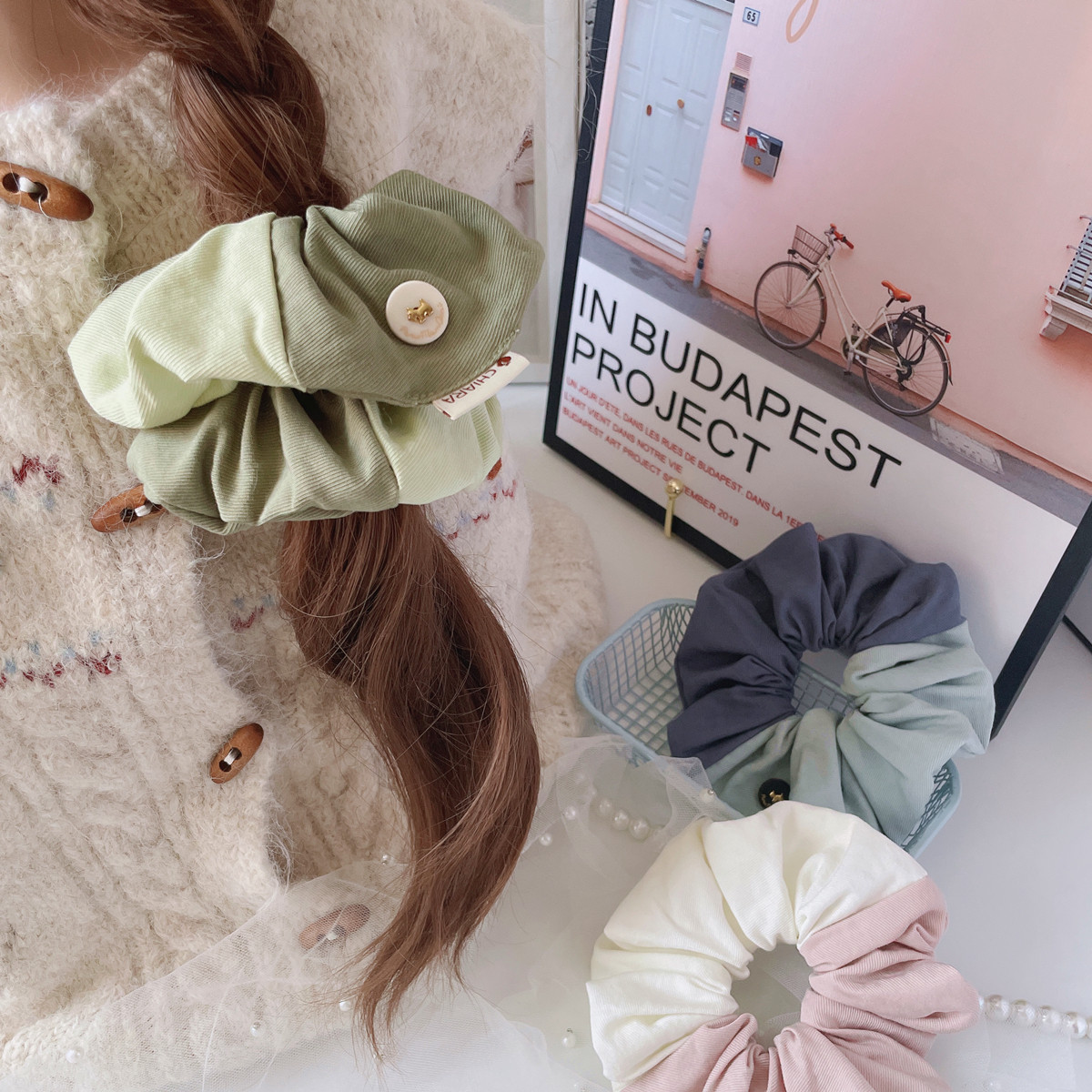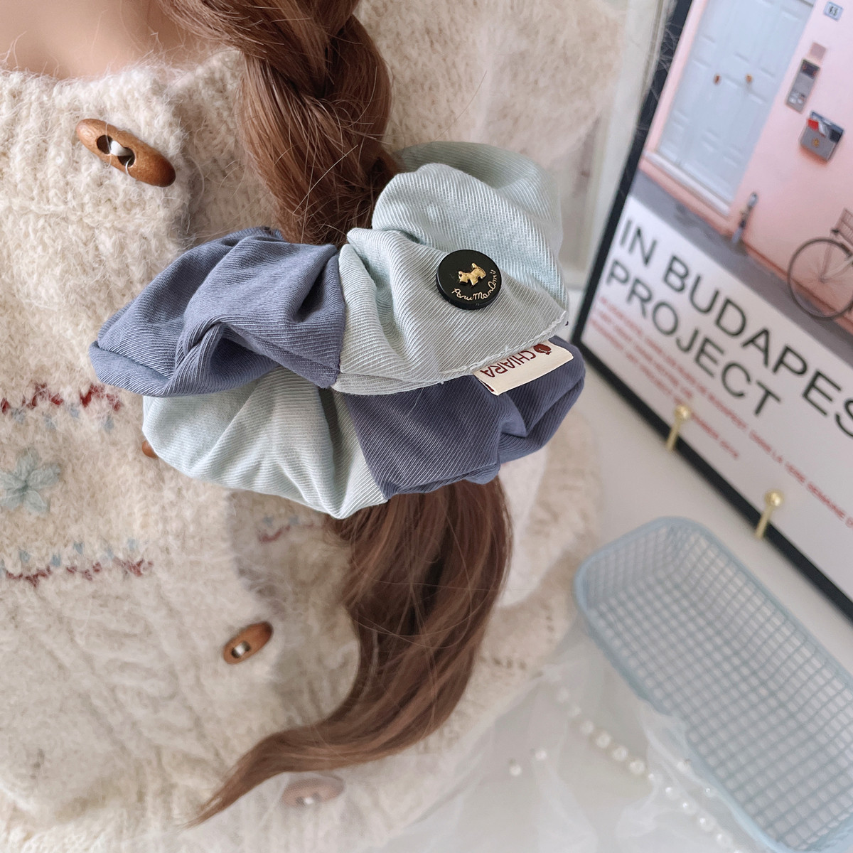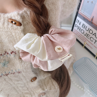 浅春系发饰少女发圈baby蓝纽扣布艺超大肠圈头饰扎头发花盘发头绳