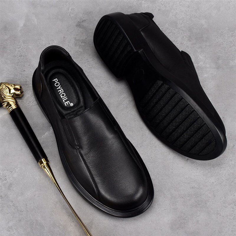 新品 男真皮头A层牛皮一脚蹬套脚厚底圆头商务休 2026外贸春秋皮鞋