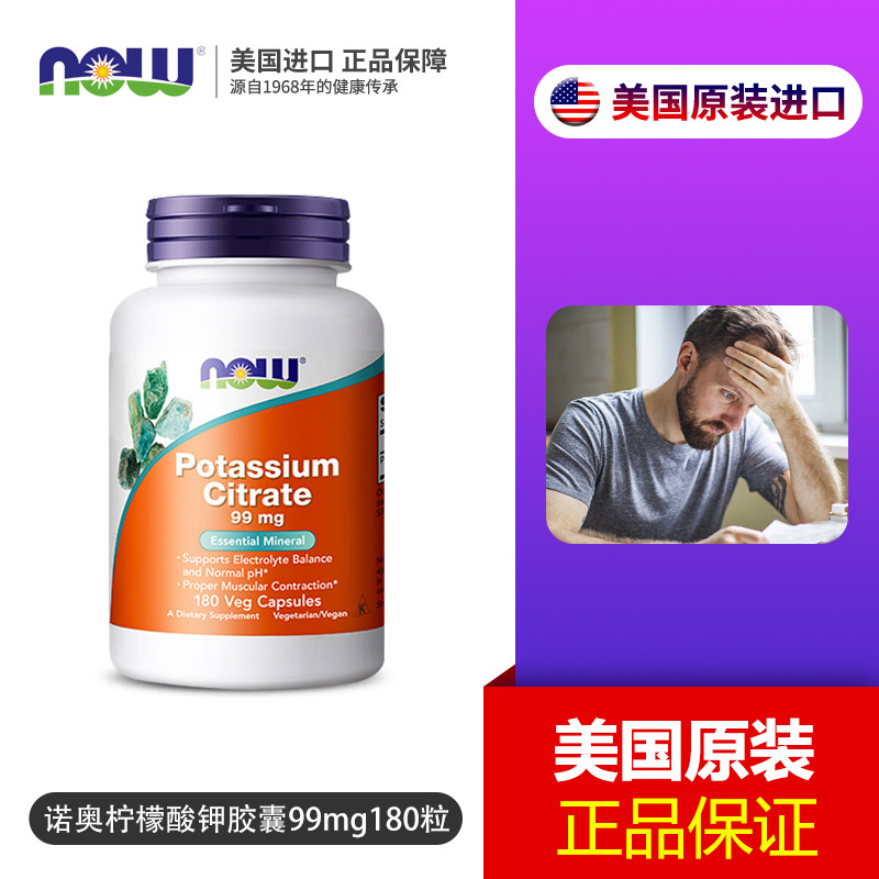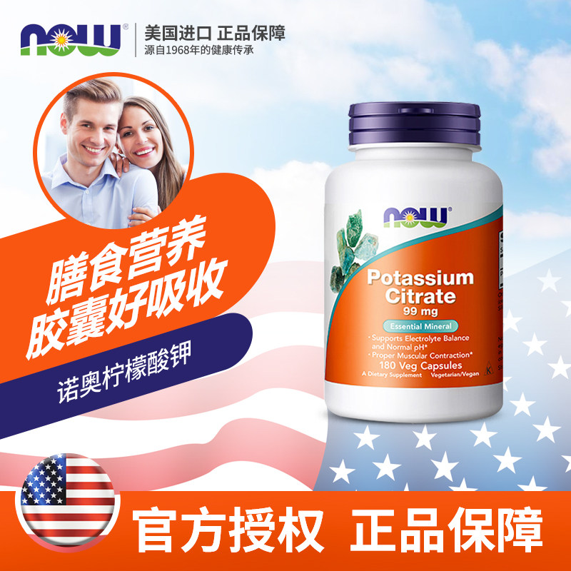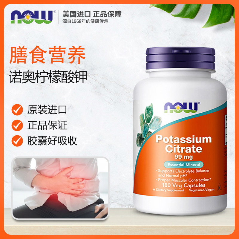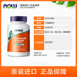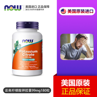 NOW 素补充补钾辐射180粒 Foods诺奥柠檬酸钾胶囊平衡酸碱PH值钾元