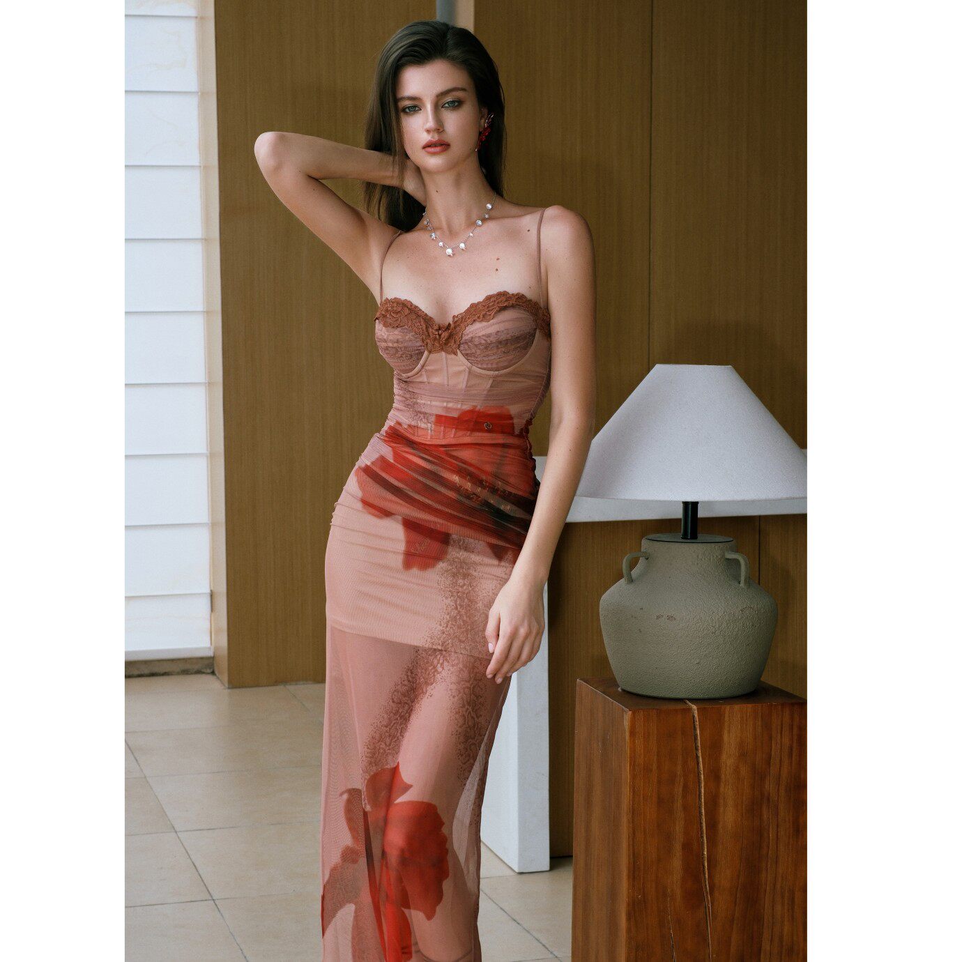 连衣裙长裙 Floral网纱水墨吊带度假风假两件鱼骨修身 Sheer Luck
