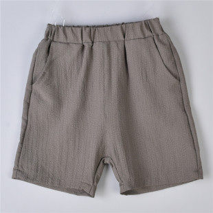 夏 74372松紧腰双口袋创意压褶纹休闲直筒裤 228外贸男儿女童装 短裤