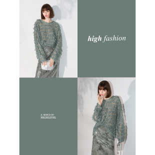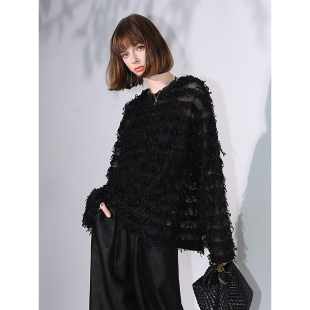 COCOBELLA设计感微透视流苏罩衫 SE7006 女慵懒松弛感毛边针织衫