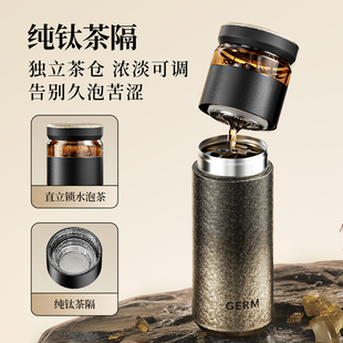 GERM纯钛保温杯茶水分离泡茶杯男款 水杯便携生日礼物 钛杯2025新款