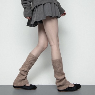 SS2L春夏纯色羊毛混纺竖纹针织短筒袜套女堆堆袜日系JK少女风腿套