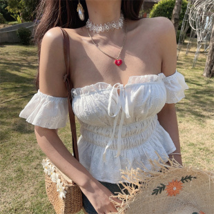 抹胸上衣 系带度假衬衫 chenopod仙女小白衫 100%棉纯欲一字肩飞飞袖