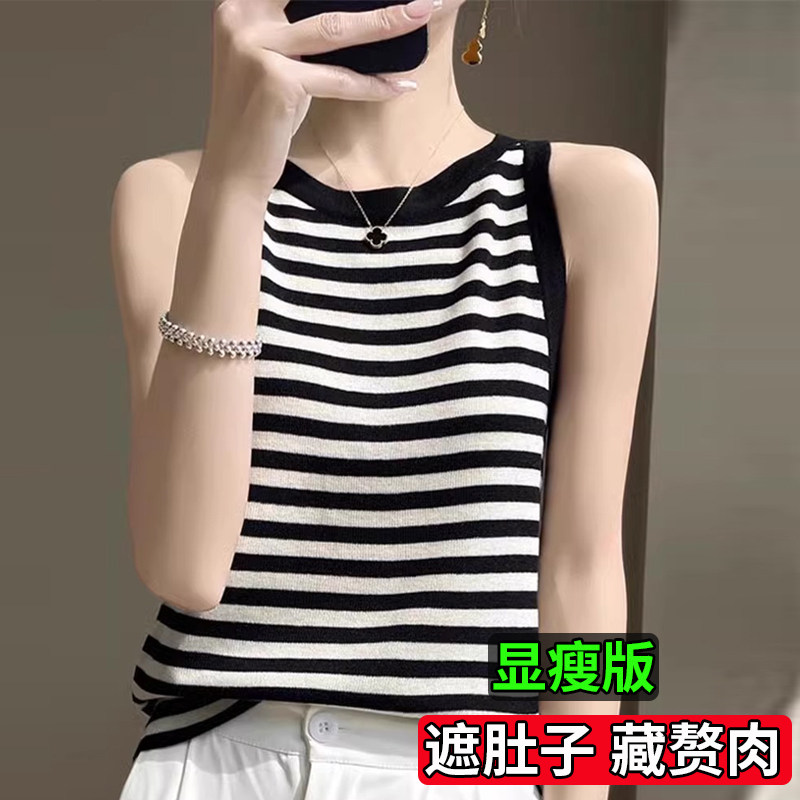 2025新款 薄款 打底上衣200斤 胖mm吊带背心女内搭夏冰丝针织衫 大码