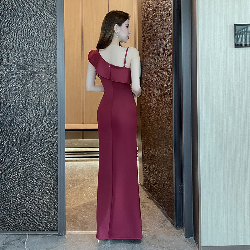 夜总店性感连衣裙长款 技师晚礼服夜场 气质显瘦单肩荷叶边足疗柔式