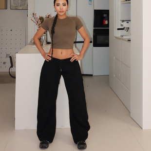 瑜伽健身长裤 女宽松弯刀阔腿裤 studio欧美运动休闲裤 akiyo