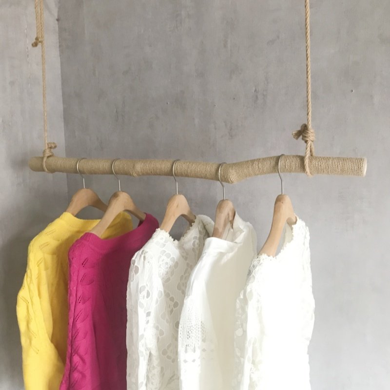 服装 货架 店树枝衣架原木简约展示架吊顶悬挂架晾衣杆麻绳吊挂女装