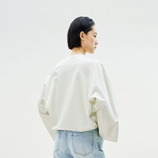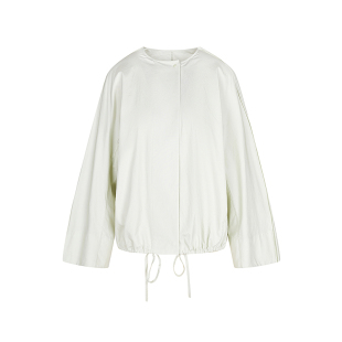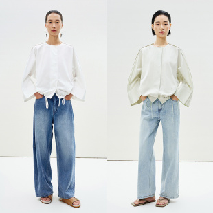上衣女2P4211930 衬衫 LESS夏圆领抽绳宽松休闲短款 通勤连肩袖