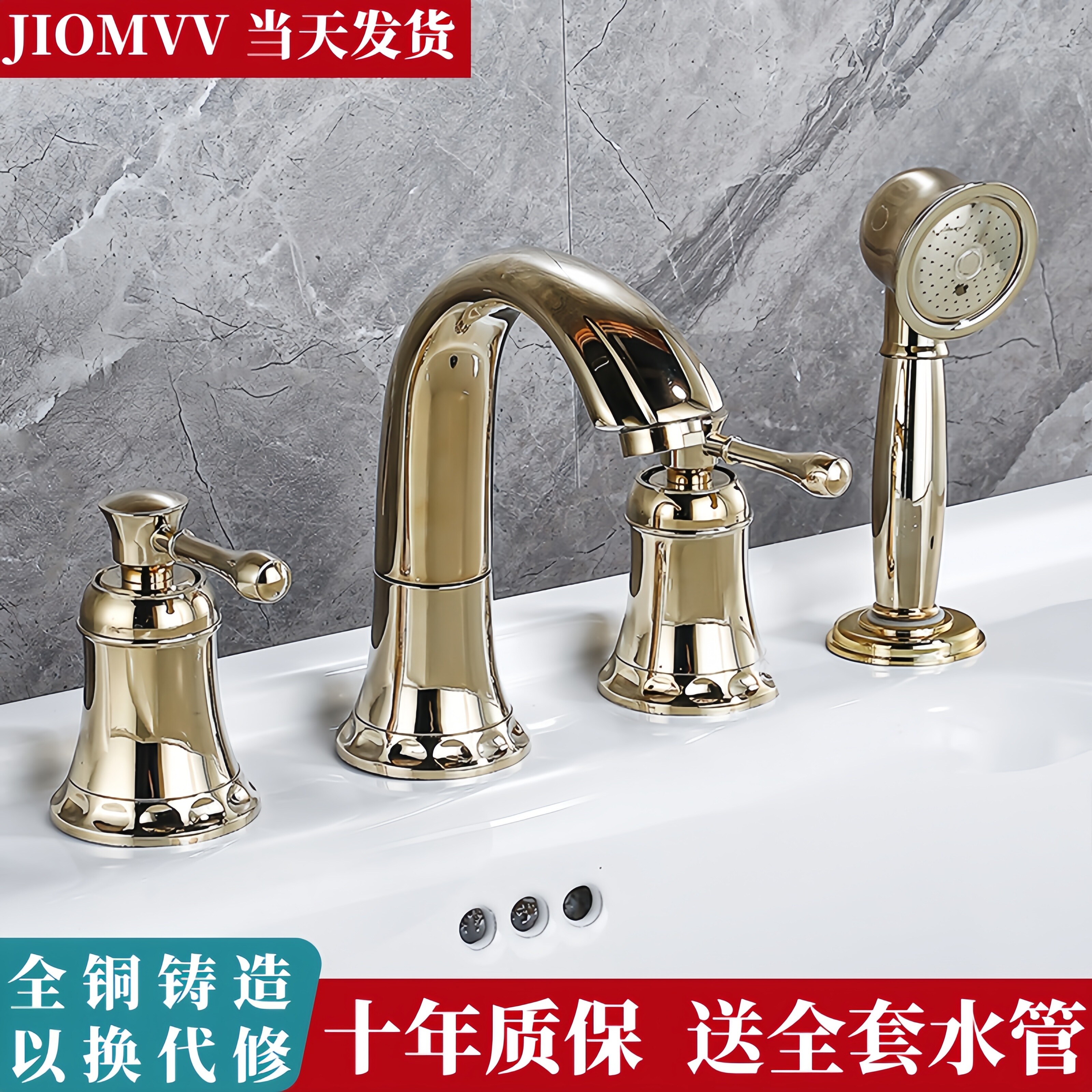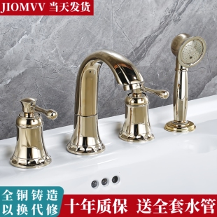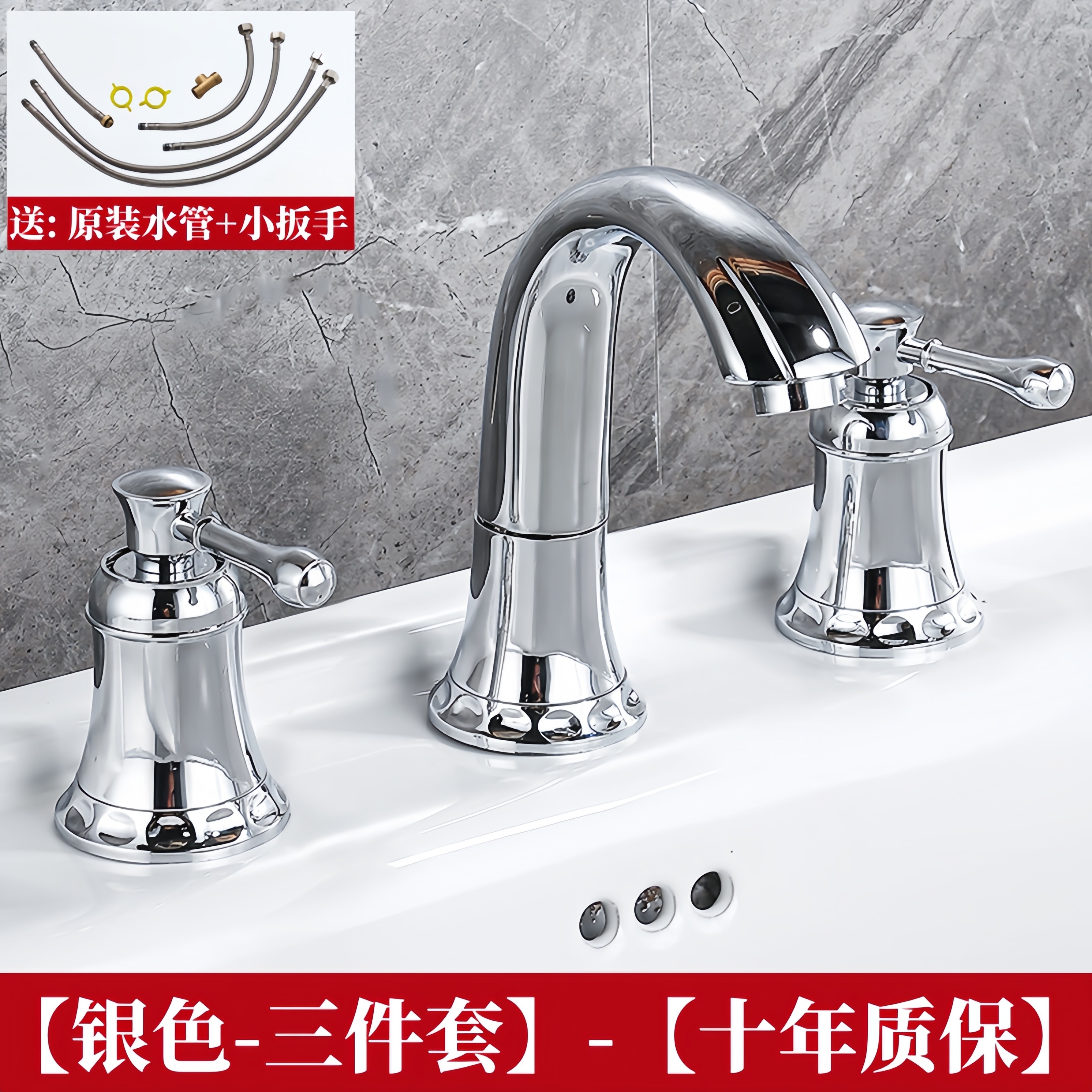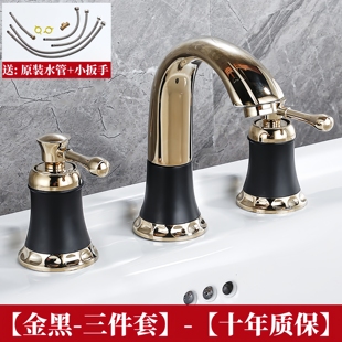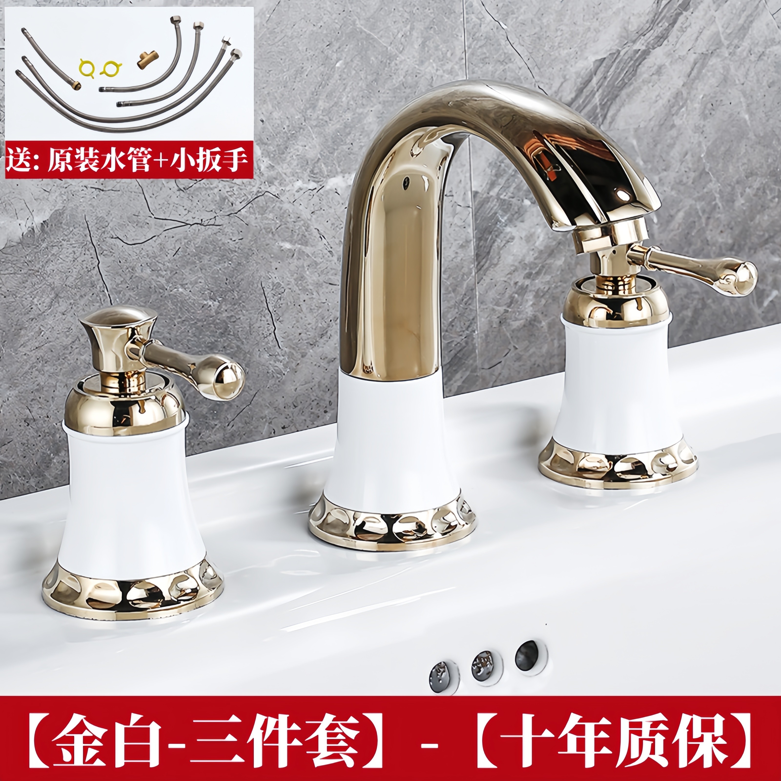 欧式 双把冷热配件 全铜三孔洗脸盆池水龙头四件套卫生间金色分体式