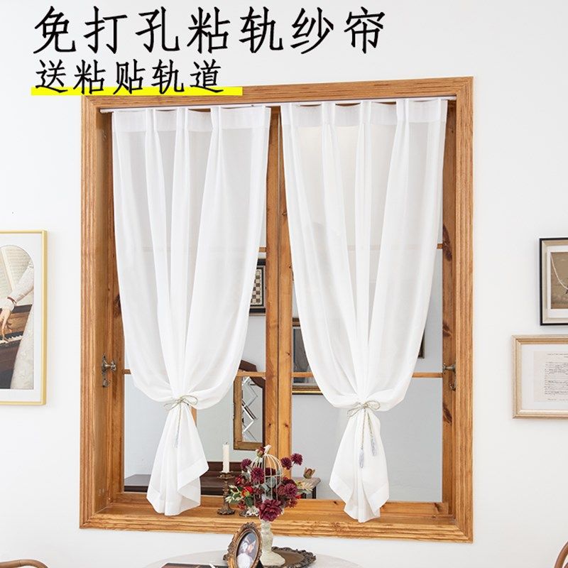 免打孔安装 粘贴轨道窗纱窗帘透光飘窗衣柜遮挡厨房客厅隔断白纱