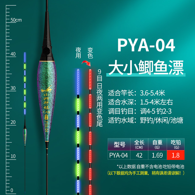 咬钩变色蓝绿尾电子夜光漂日夜两用高灵敏鲫鱼夜钓浮漂 3支装