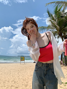 气质内搭女叠穿背心打底百搭 衬衫 法式 V领木耳花边丝滑缎面无袖